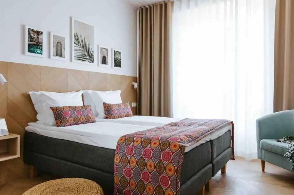 Hotel in a traditional wooden house. Everything is renovated with taste and comfort. Spacious rooms upstairs, very comfortable beds. Very friendly welcome, refined breakfast. Place de Parc in front of the hotel, located 2 min walk from the small lake and 5 min from the sea. Haapsalu is charming. Many walking possibilities in the region.